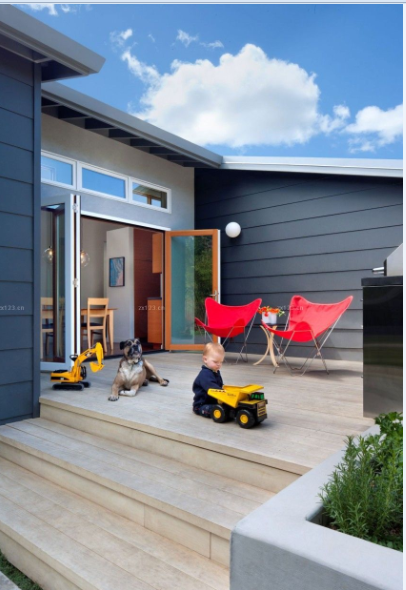 藍(lán)天白云加上白色的橡木,給小朋友一份玩樂(lè)時(shí)的寧?kù)o。