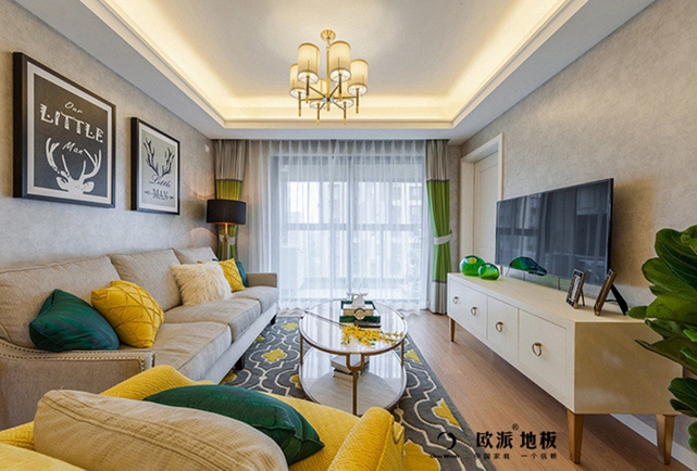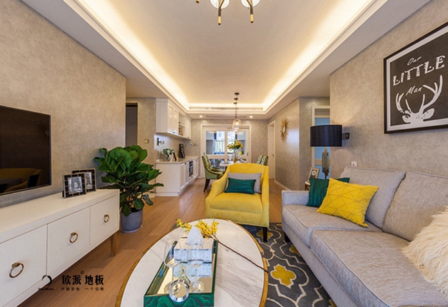 另外,色彩會(huì)影響人的視覺效果,暖色調(diào)為擴(kuò)張色,冷色調(diào)為收縮色。所以,面積小的房間地面要選擇暖色調(diào)的擴(kuò)張色,使人產(chǎn)生面積擴(kuò)大的感覺。關(guān)于地板和墻面顏色的搭配,地板現(xiàn)在有不少家庭喜歡把地板刷成白色,希望擁有寧靜的家居氣氛。墻面建議使用灰白色系等較為輕快的顏色,容易給人寧靜的感覺,松木材質(zhì)地板直接在松木地板上刷清漆后呈現(xiàn)的顏色略帶黃色調(diào),墻壁就運(yùn)用“相鄰顏色”的法則,可挑選與黃色相鄰的綠色,這樣就能營(yíng)造出一個(gè)溫暖和溫馨的氛圍。