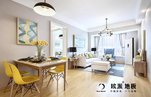 雙拼地板:它的基調營造出溫馨自然的效果,拼接中展現錯落有致的層次感和精致味道,整體色調簡潔明快,紋理直密且夾雜著跳動的曲線,細膩卻不古板。