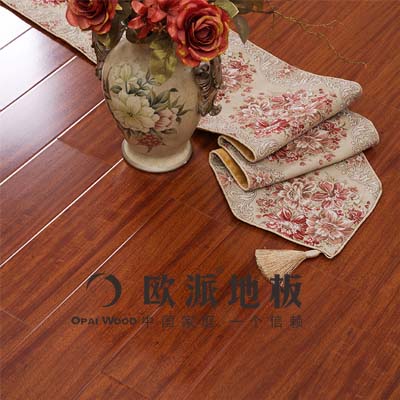 強化地板一般是由四層材料復合組成,即耐磨層、裝飾層、高密度基材層、平衡(防潮)層。合格的強化地板是以一層或多層浸漬熱固氨基樹脂覆蓋在高密度板等基材表面,背面加平衡防潮層、正面加裝飾層和耐磨層經(jīng)熱壓而成。