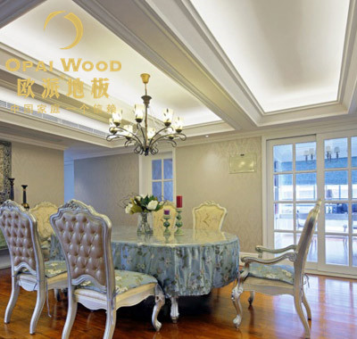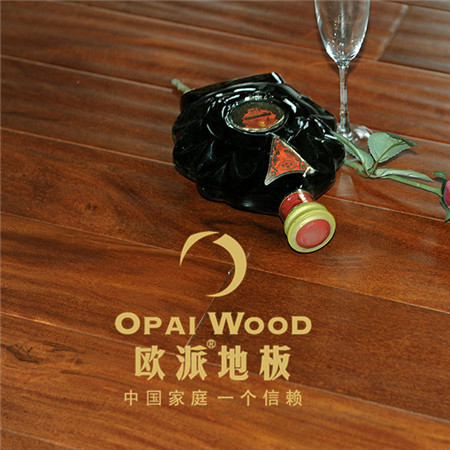 我們歐派地板龍鳳檀實木地板特征體現著光澤,材質重硬或甚重硬,耐腐、耐磨、耐白蟻,紋理美觀,較均勻,強度高,材色悅目等優點。是地板中高檔地板、家具、室內裝飾的優良用材。